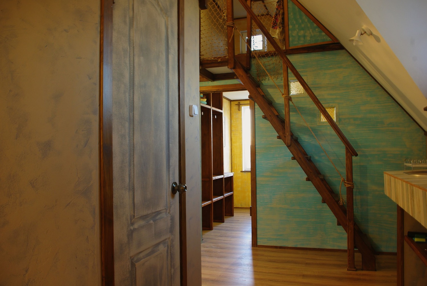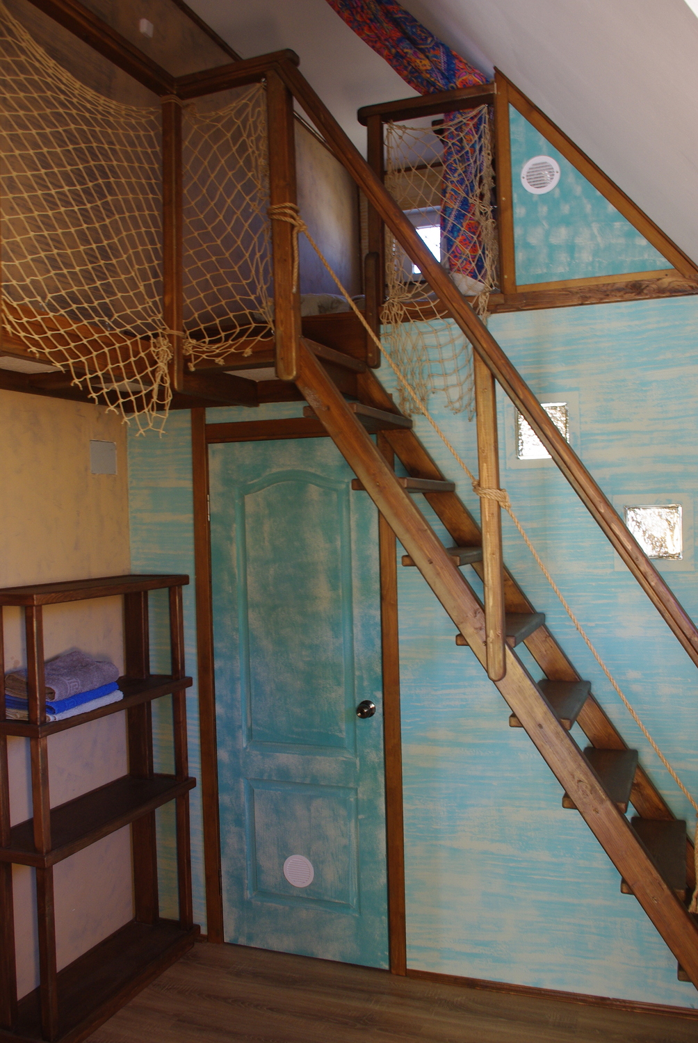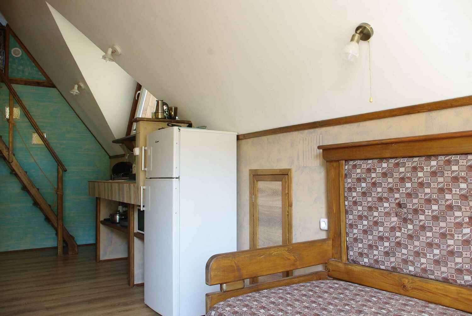Это самый большой круглогодичный номер нашего гостевого дома. Он рассчитан на шестерых гостей. На первом свете - большая кухня-гостиная с балконом-террасой и уютная спальня с двуспальной кроватью.Рядом расположен совмещённый санузел. На втором свете расположены двуспальная и односпальная кровати, разделенные "мостиком" и шторами.