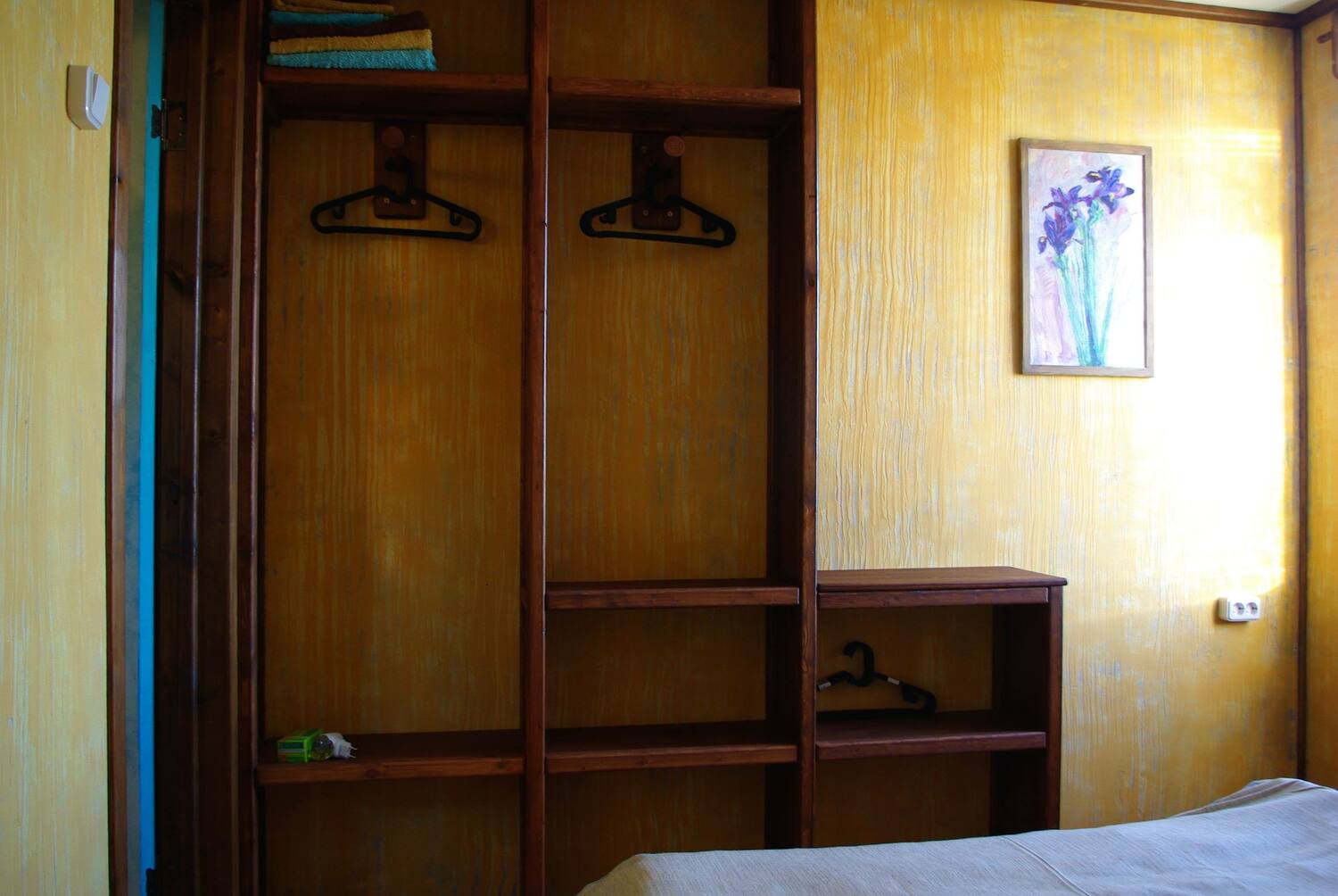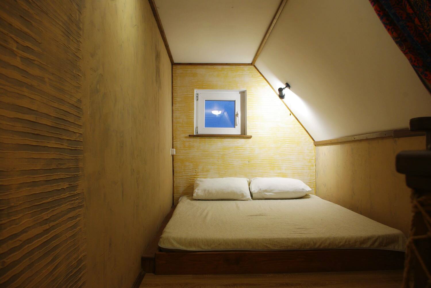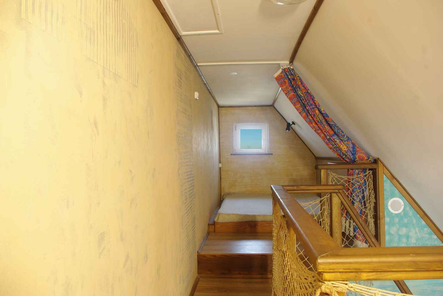 Это самый большой круглогодичный номер нашего мини-отеля. Он рассчитан на шестерых гостей. На первом свете - большая кухня-гостиная с балконом-террасой. Рядом расположен совмещённый санузел и спальня с двуспальной кроватью. На втором свете расположены двуспальная и односпальная кровати, разделенные "мостиком" и шторами. В номере: